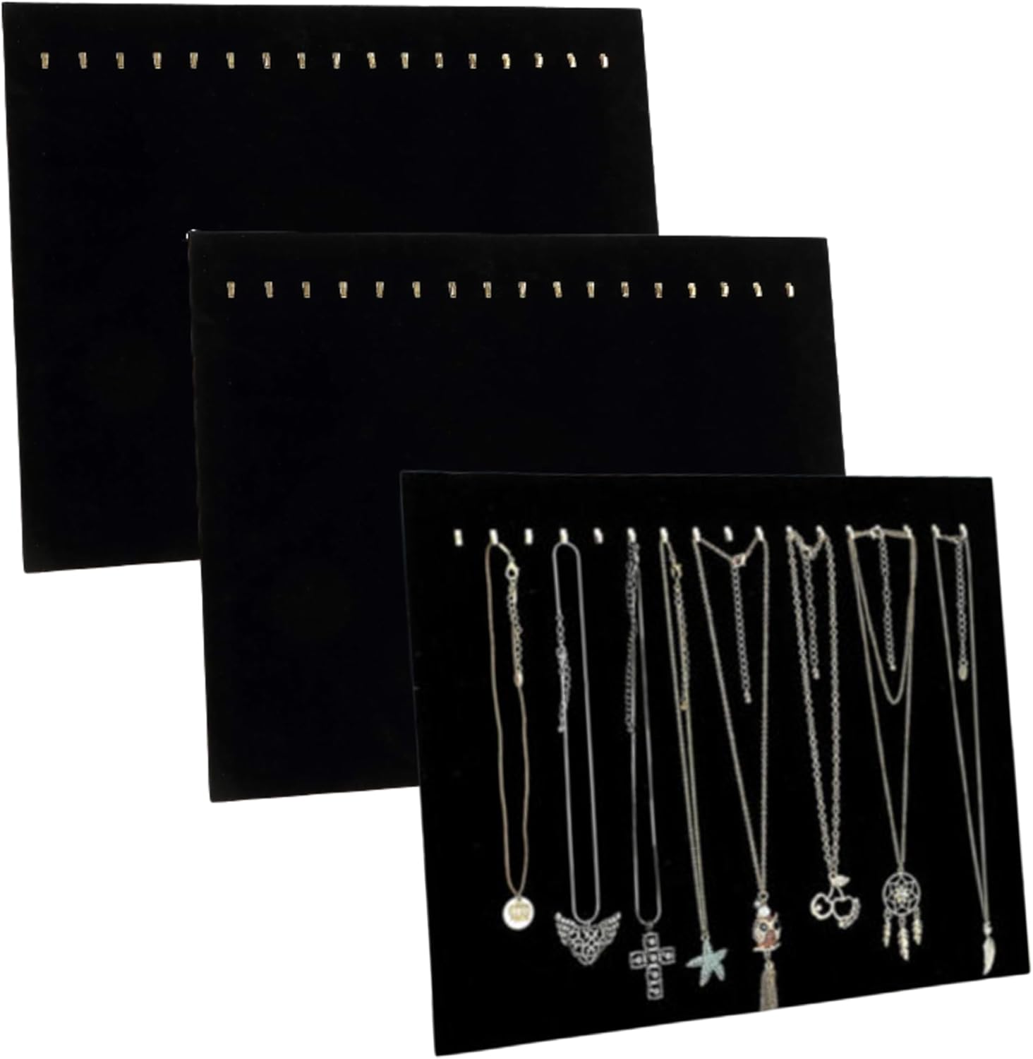 Three in pack of black velvet necklace displays with 17 hooks, great quantity allows you to display your necklaces , chains and other jewelry, prevent your jewelry from scratches and damage