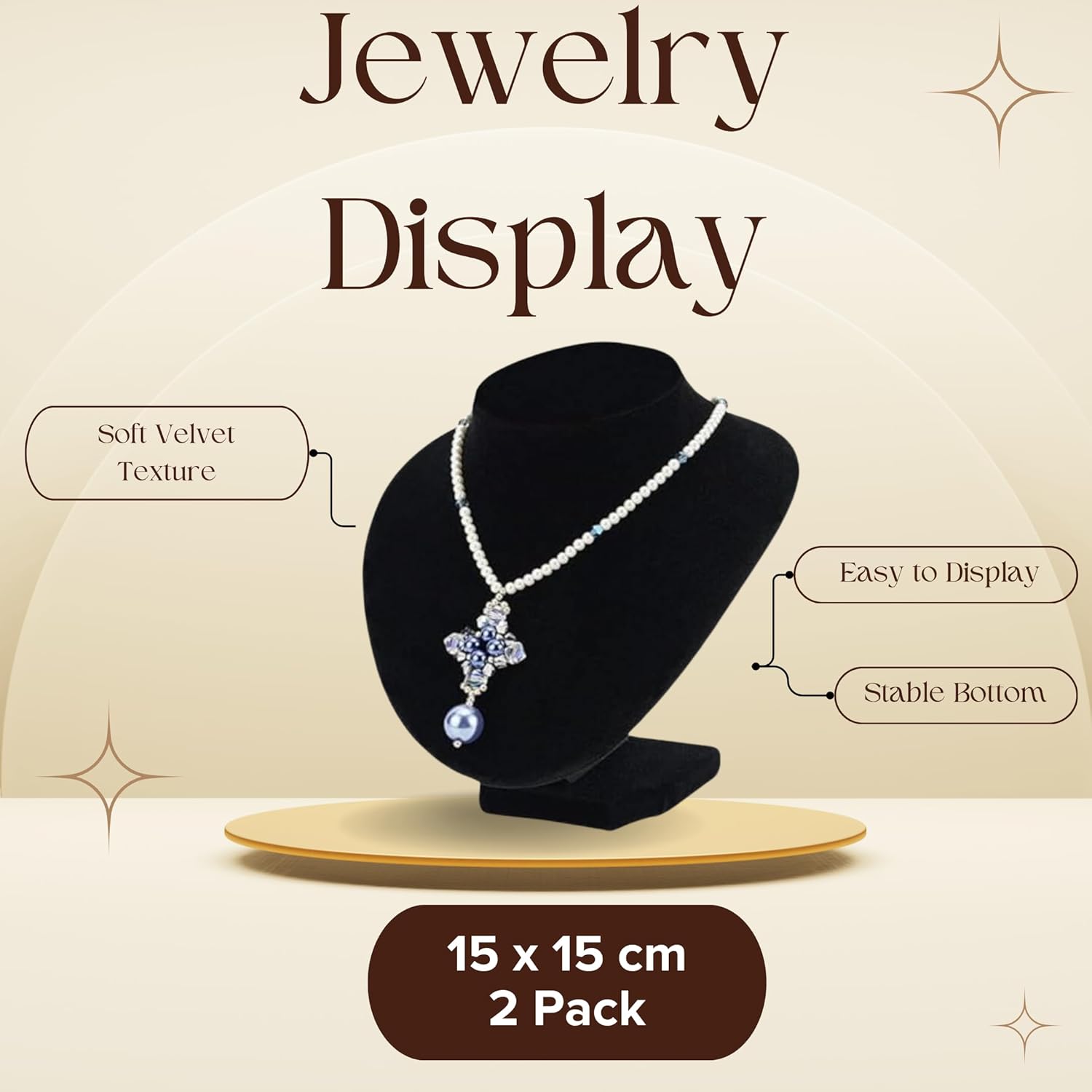 Ideal for Vendors and Personal Use: These 6-inch tall 15x15Hcm jewelry holder stands offer a sophisticated way to organize and display your necklaces collection.