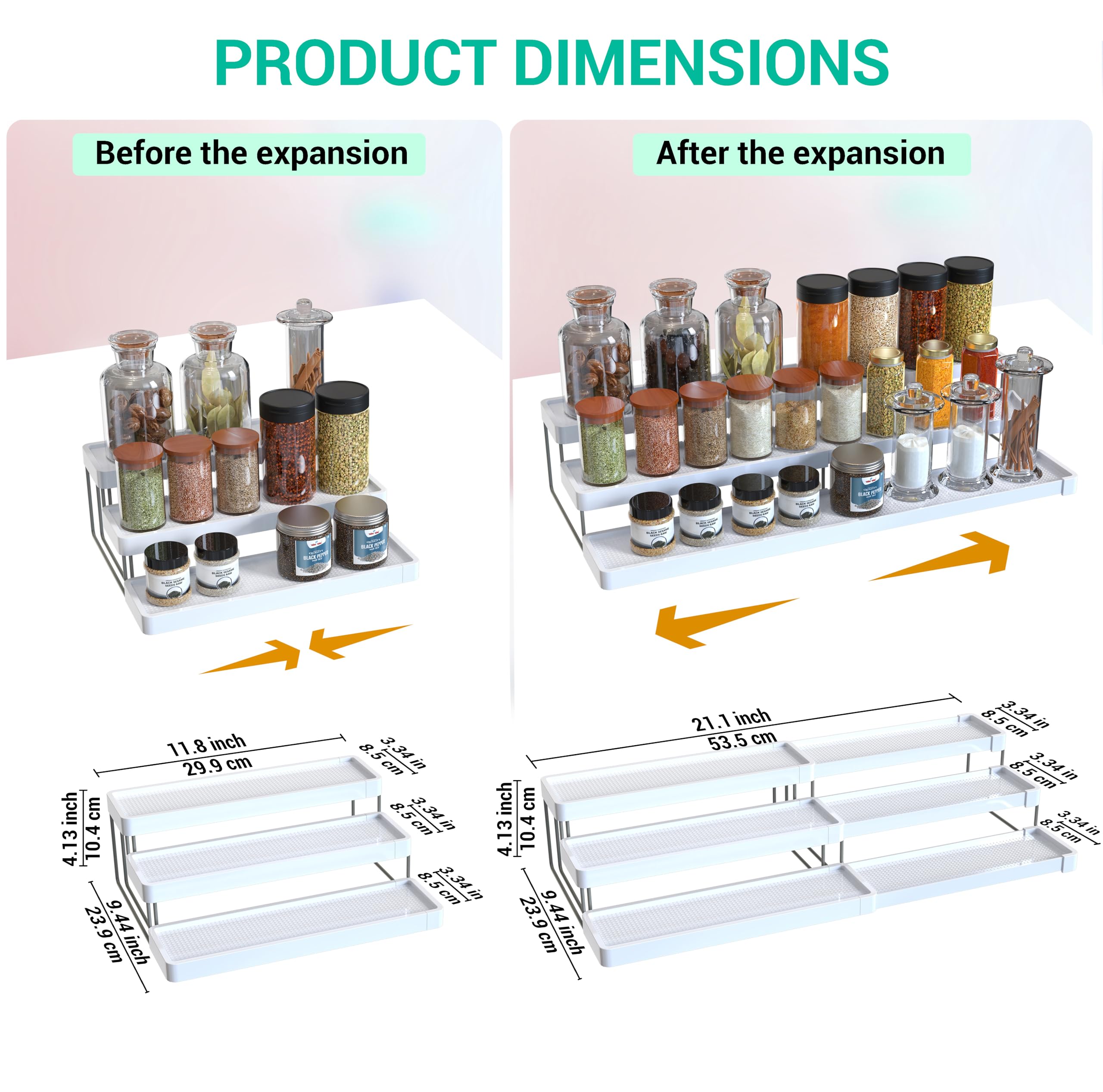 Introducing the Yan & Hin 3-Tier Spice Racks, a quintessential addition to your kitchen organization arsenal, designed to elevate the aesthetic and functionality of your culinary space. This versatile non-skid, expandable spice racks transforms cluttered kitchen areas into models of efficiency and elegance. Crafted with precision, these spice racks serve as the ultimate seasoning rack, providing ample storage for your diverse array of spices. Whether you require a cabinet spice organizer or a pantry shelf organizer, Yan & Hin offers a streamlined solution that integrates seamlessly into various spaces. The sleek design ensures your spices are accessible, organized, and displayed beautifully, enhancing your kitchen's overall appearance. The expandable feature of these spice racks ensures adaptability to different cabinet dimensions, making them ideal as a spice rack organizer for cabinets. Their 3-tier structure allows for a clear view of each spice, facilitating quick access during cooking, thereby enhancing efficiency. This tiered spice rack is also a perfect match for pantry organization, where it can be utilized as a pantry organizer or can organizer for pantry, offering a structured approach to storing canned goods and spices. In addition to serving as a spice drawer organizer with jars and labels, this product doubles as a cabinet shelf organizer, providing a multifunctional solution for your kitchen needs. The non-skid surface ensures stability, preventing any accidental spills or disarray. With its sophisticated design, the spice rack for countertop use is equally impressive, adding a touch of elegance to your kitchen decor. Moreover, the Yan & Hin spice racks align perfectly with the modern need for pantry organizers and storage shelves, ensuring every inch of your space is utilized effectively. This spice organizer for cabinet use is not only a practical addition but also a testament to refined taste and organizational prowess. Experience seamless pantry organization and elevate your kitchen's functionality with Yan & Hin's innovative spice racks. Embrace the future of kitchen shelf organizers and transform your cooking space into a haven of order and style, reflecting both functionality and sophistication. Choose Yan & Hin for unparalleled organization and a clutter-free culinary experience.